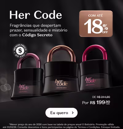E tem mais: aproveite seu desconto de primeira compra em produtos que não estão participando das promoções. Uma oportunidade assim, só no Boticário. Vamos renovar seu nécessaire?