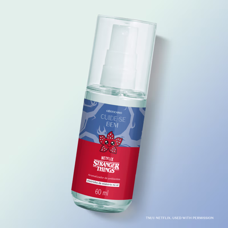 O Aromatizador de Ambiente Cuide-se Bem Stranger Things entrega um home fragrance enigmático que garante uma pista diferente a cada borrifada.
