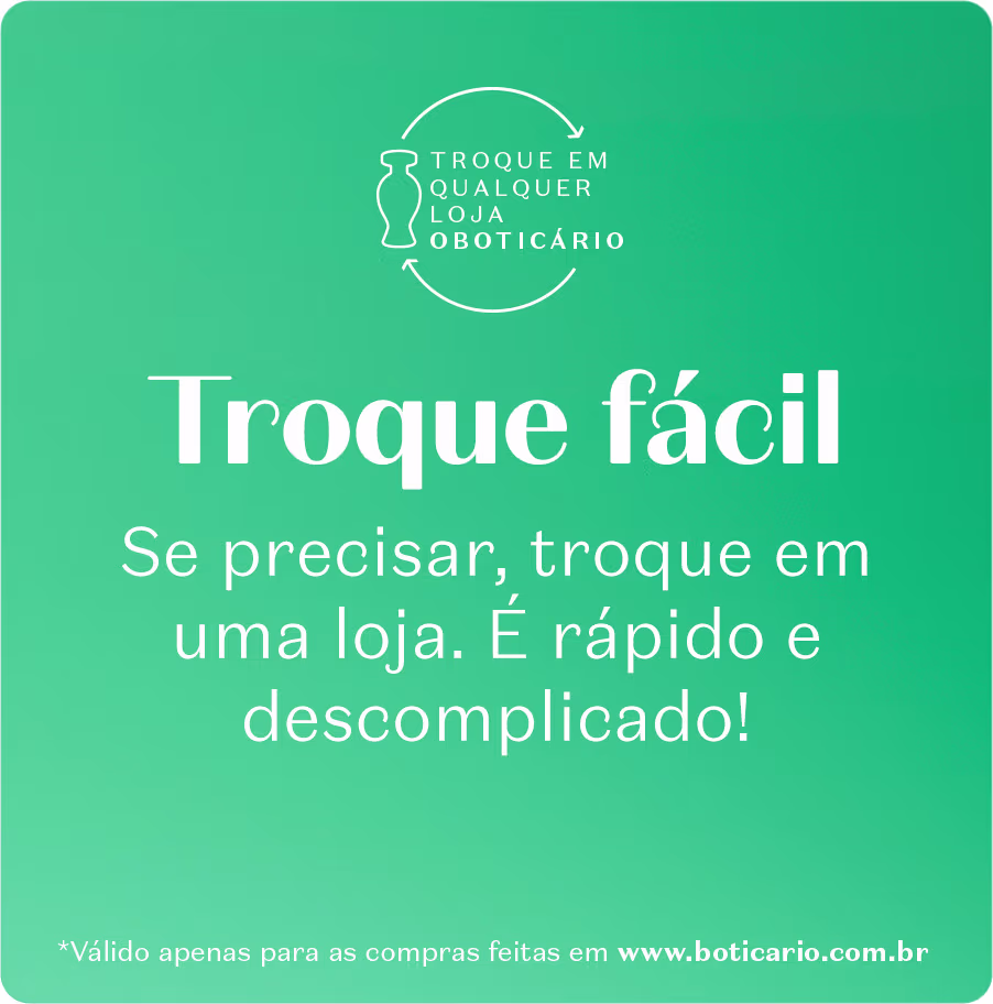 Nenhum produto o Boticário é testado em animais, ou seja, este item possui selo Cruelty Free.