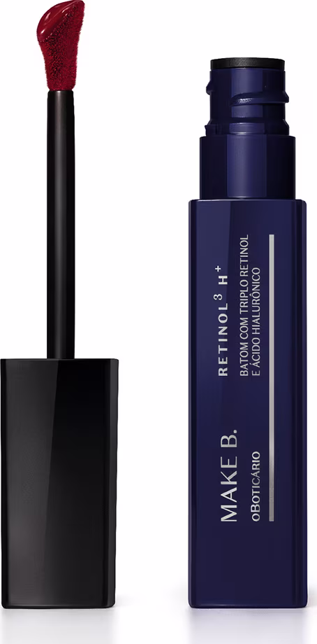 Apresentamos o Batom Líquido Rosa Pink Hibiscus Make B. Retinol³ H+ . Com Triplo retinol* e ,possui ação antioxidante e reduz linhas e rugas profundas* além de potencializar a produção de colágeno***