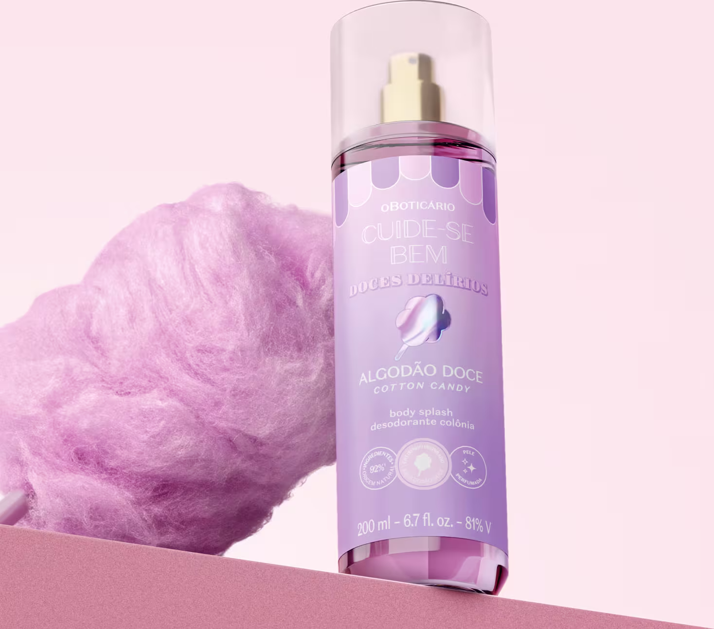 Inspirada no universo dos doces, o Body Splash Desodorante Colônia Cuide-se Bem Doces Delírios Algodão Doce te leva para um mundo de pura doçura com o cheirinho inconfundível inspirado em algodão doce, entregando uma pele perfumada com uma deliciosa fragrância oriental gourmand.