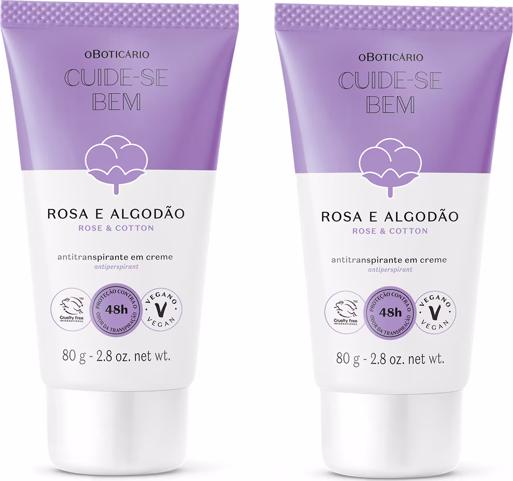 O Antitranspirante em Creme Cuide-se Bem Rosa e Algodão entrega 48 horas de proteção em dose dupla Ver mais ❯