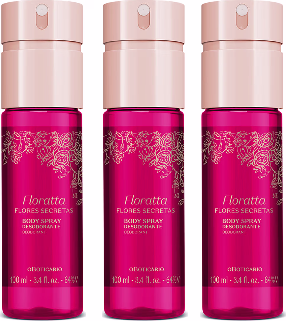O Combo Body Spray Floratta Flores Secretas é aquela combinação de produtos que não pode faltar na sua vida. Doce, delicado e romântico, o combo traz três unidades, para a sua experiência de perfumação mais intensa nunca faltar.
