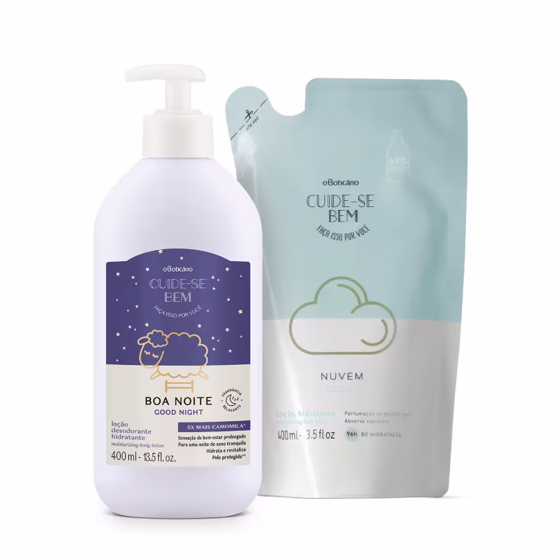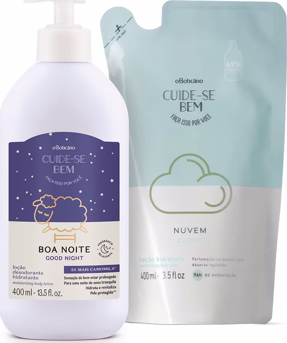 Combo Cuide-se Bem: Loção Hidratante Corporal Boa Noite 400ml + Refil Loção Hidratante Corporal Nuvem 400ml