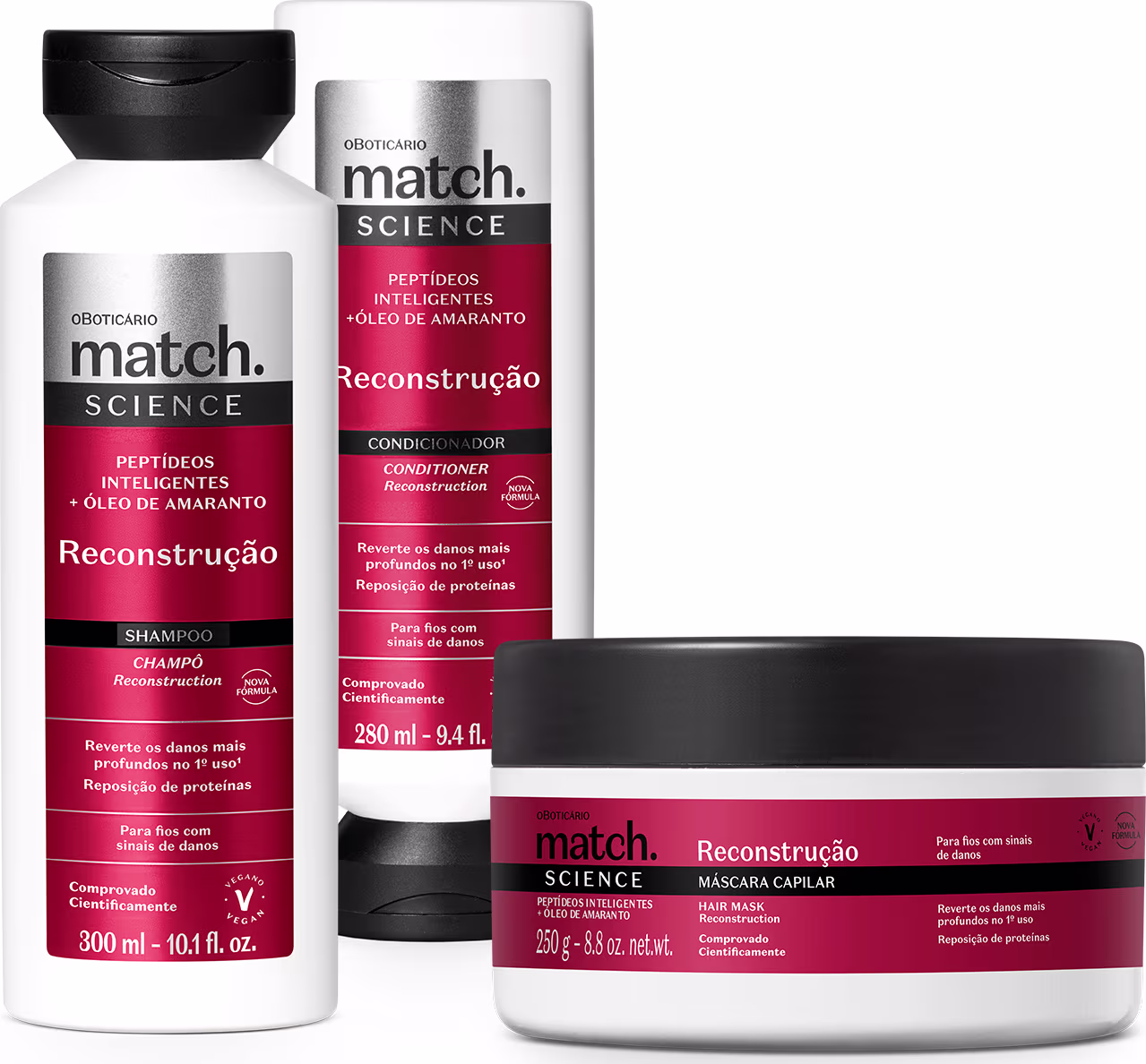 Combo Match Science Reconstrução: Shampoo 300ml + Condicionador 280ml + Máscara Capilar 250g