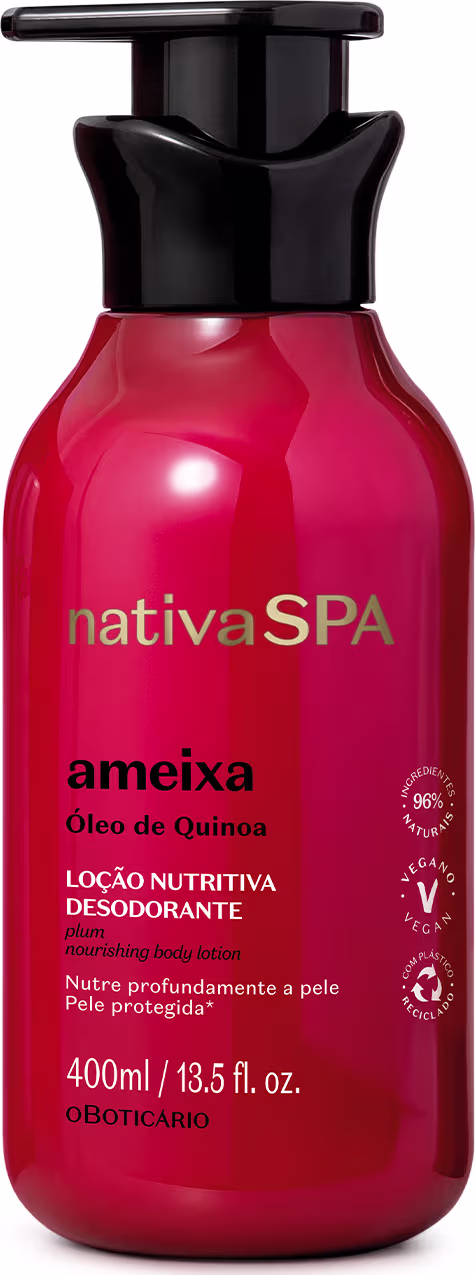 A Loção Hidratante Desodorante Corporal Nativa Ameixa contém uma fragrância intensa e vibrante e apresenta o poder da hidratação através das gotas purificadas da Quinoa, ingrediente considerado a semente da beleza. Além disso, possui microcápsulas traz microcápsulas da fragrância de Ameixa que se rompem ao longo do dia,intensificando a desodorização da pele.