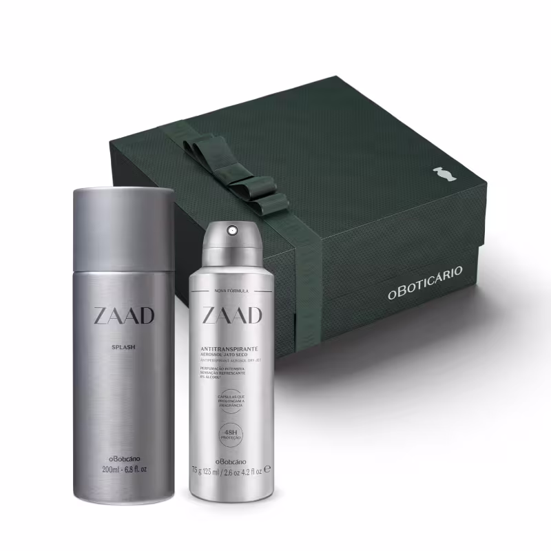 Não sei o CEPCombo Presente Zaad: Body Splash 200ml + Desodorante 75g/125ml + Caixa de Presente