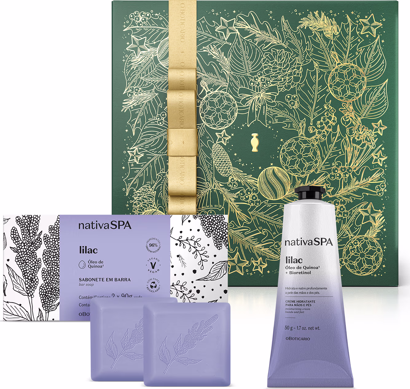 Nativa Spa Lilac nos convida a sentir a pele macia e delicada como o toque das flores com uma renovação profunda que mantém a pele saudável e rejuvenescida. Com uma combinação exclusiva de quatro flores lilases, este Combo Nativa Spa Lilac traz sabonete em barra e uma opção de hidratação para mãos e pés em uma rotina mais agradável. O Combo também vem com uma caixa de presente, para tornar tudo mais especial: