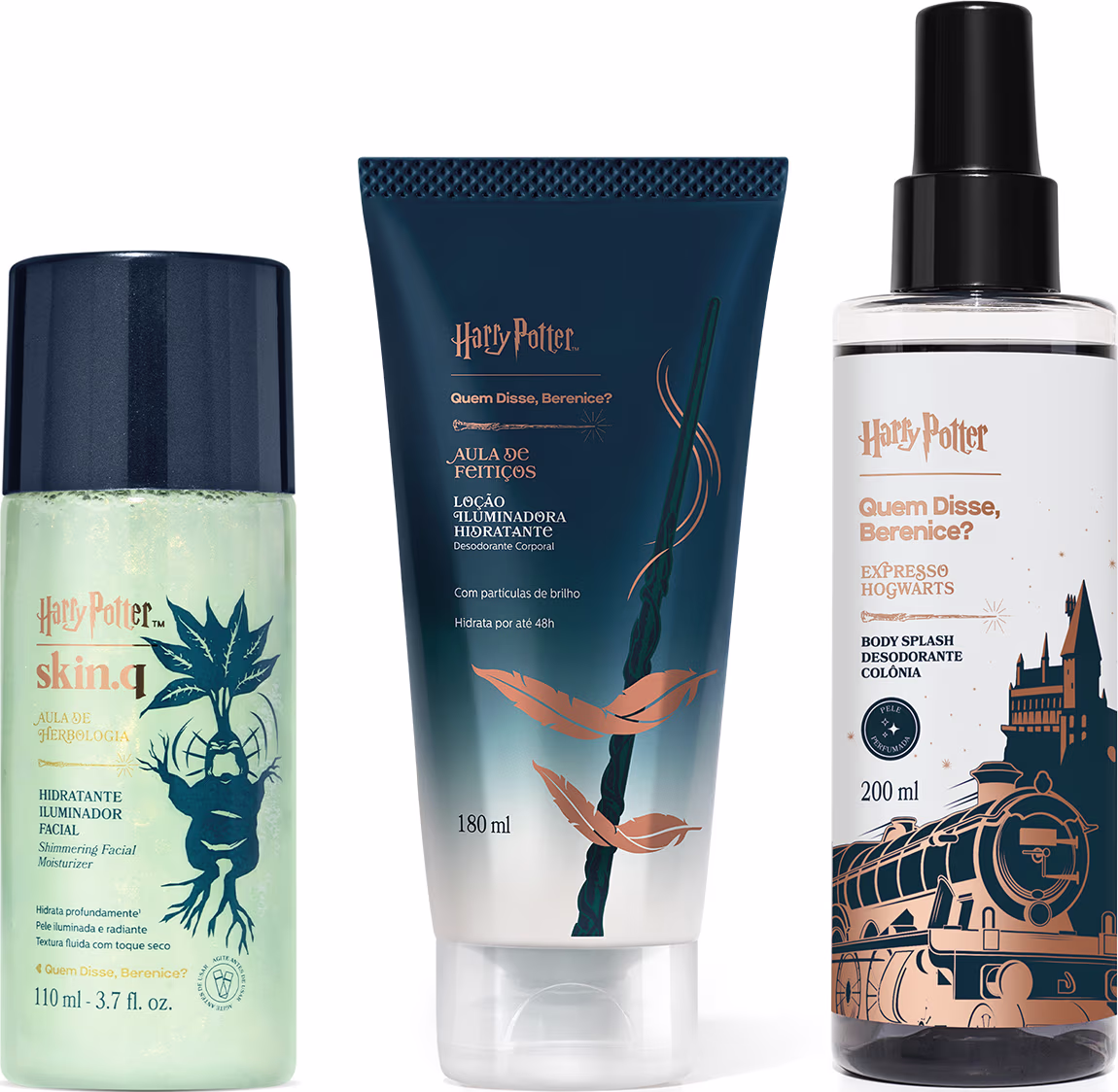 O Combo Harry Potter Quem Disse, Berenice? te convida a uma imersão no universo de Harry Potter. Realize seu brilho com hidratação intensa e uma luminosidade cativante, deixando sua pele radiante de ponta a ponta. Além disso, este combo inclui um body splash para envolver você em uma fragrância deliciosa com notas amadeiradas por onde você for!