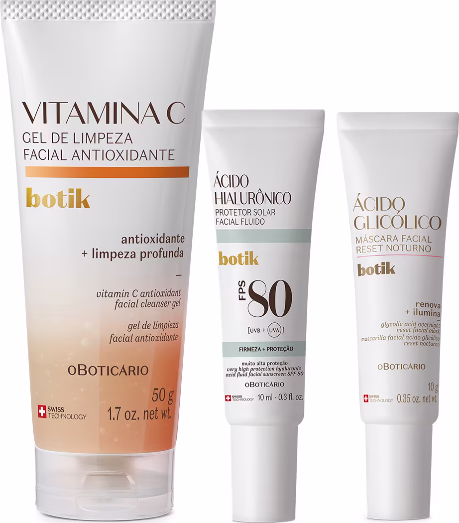À noite, a Máscara Facial Reset Noturno Ácido Glicólico Botik é o produto que não pode faltar no seu skincare noturno. Ela conta com uma fórmula composta por ativos de alta performance como o Ácido Glicólico e Tecnologia Suíça que aceleram a renovação celular e proporcionam diversos benefícios para a sua pele enquanto você dorme.