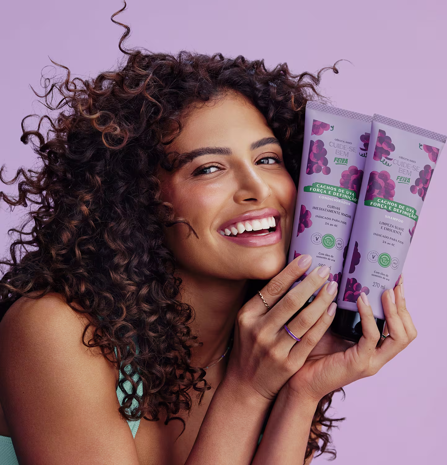 A linha Feira Cuide-Se Bem traz ingredientes queridinhos em produtos desenvolvidos especialmente para você cuidar bem dos seus cabelos no dia-a-dia com muita leveza e um cheirinho delicioso de uva!