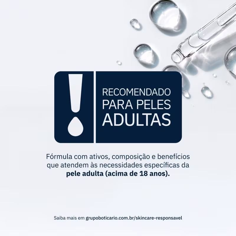 Recomendado para peles adultas: fórmula com ativos, composição e benefícios que atendem às necessidades específicas da pele adulta (acima de 18 anos).