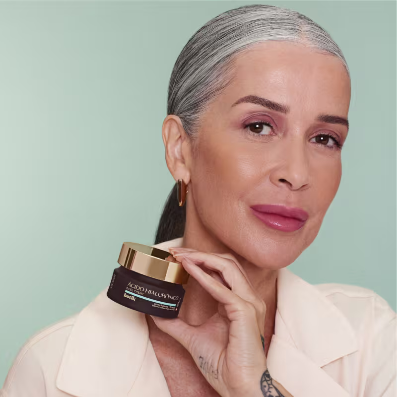 A fórmula do Creme Facial contém Ácido Hialurônico que é um poderoso ativo que preenche e redensifica a pele* desde as camadas mais profundas, além de oferecer uma hidratação intensa e estimular a produção de colágeno.