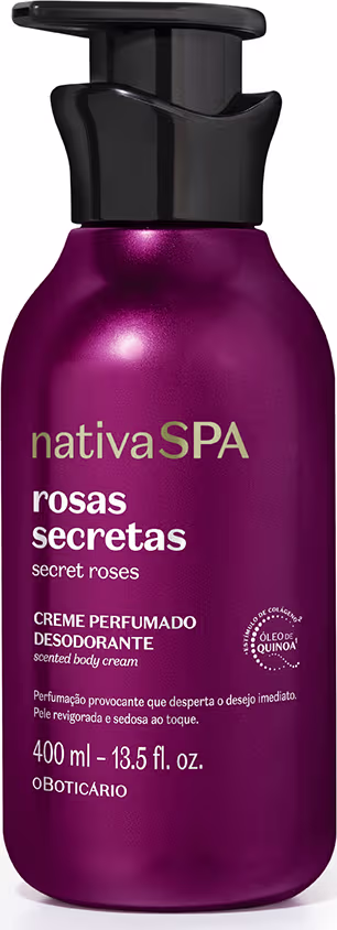O Creme Perfumado Desodorante Corporal Rosas Secretas promove uma pele desodorizada, revigorada e sedosa ao toque, aliada a alta perfumação provocante que te desperta o desejo*.