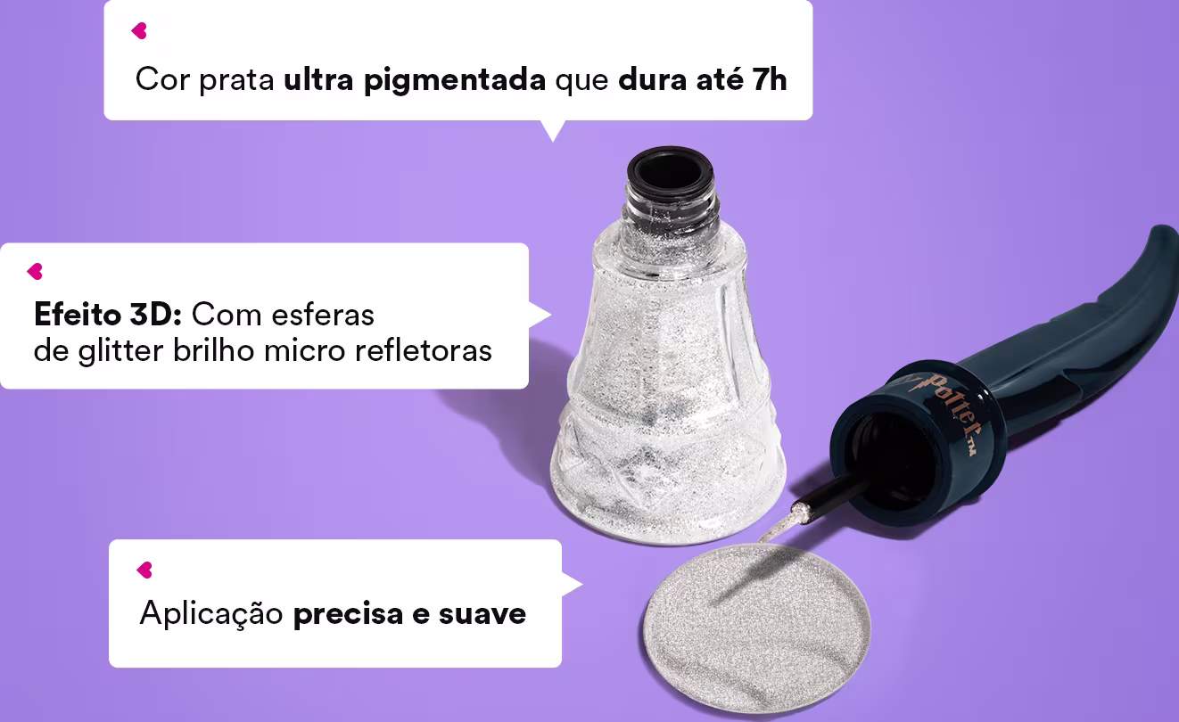 Nossa fórmula exclusiva contém esferas de glitter microrrefletoras que proporcionam efeito 3D garantindo durabilidade por até 7h!