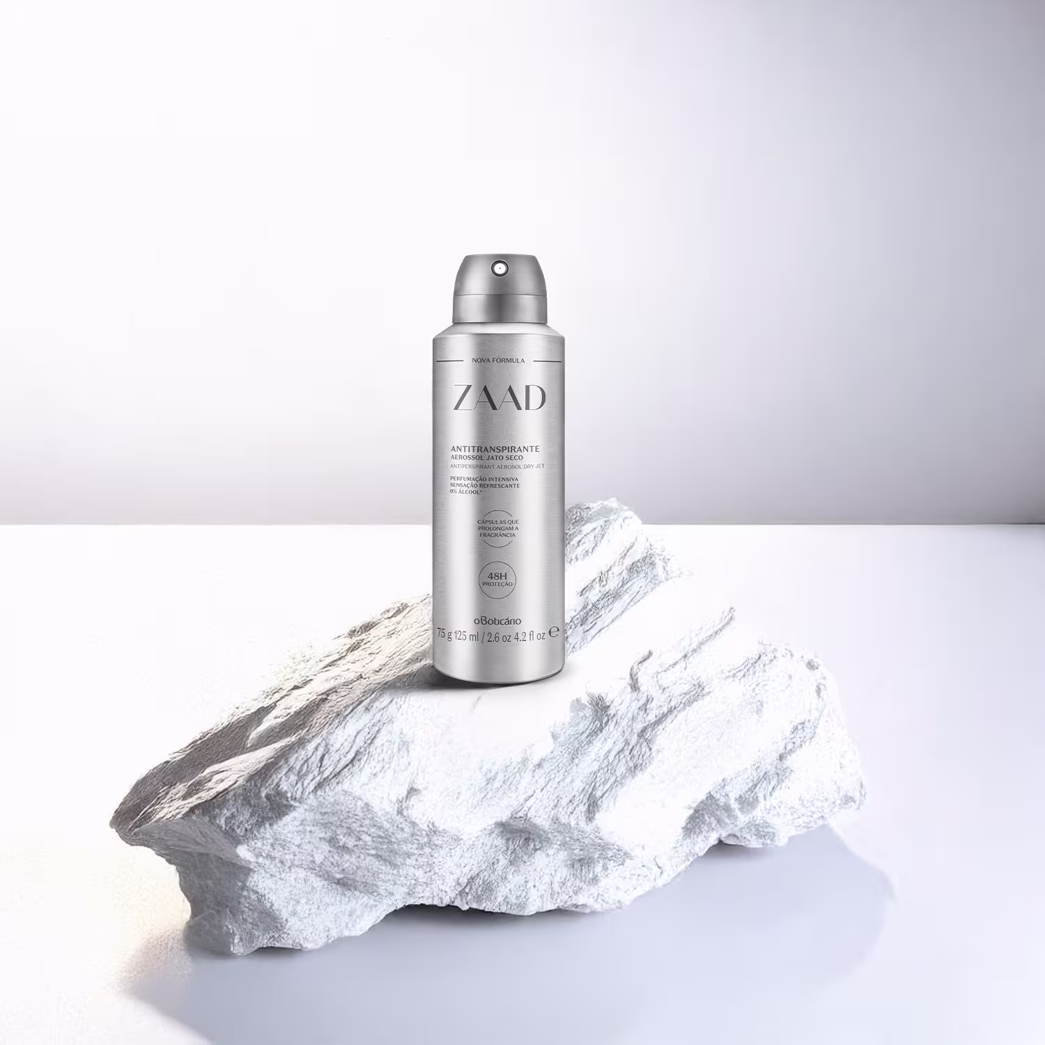 O Desodorante Antitranspirante Aerossol Zaad envolve sua pele com muita fragrância e proteção diariamente. Ver mais ❯