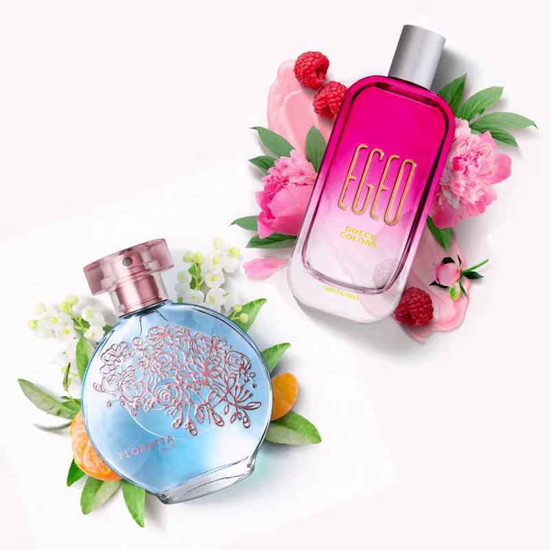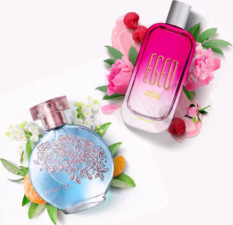 A doçura de Egeo Dolce Colors traz a mesma diversão que você já conhece em uma nova embalagem jovem, colorida e cheia de personalidade. Já Floratta My Blue, inspirado em um dos maiores clássicos de O Boticário, incentiva você a redescobrir o romance diariamente.