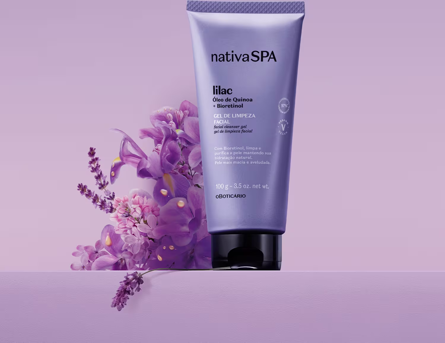 O Gel de Limpeza Facial Nativa Spa Lilac proporciona uma limpeza delicada e profunda para a pele, que se renova como as flores a cada temporada.