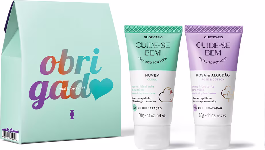 Demonstre a sua gratidão com muito carinho através deste kit, que contém dois hidratantes para as mãos. Ver mais ❯