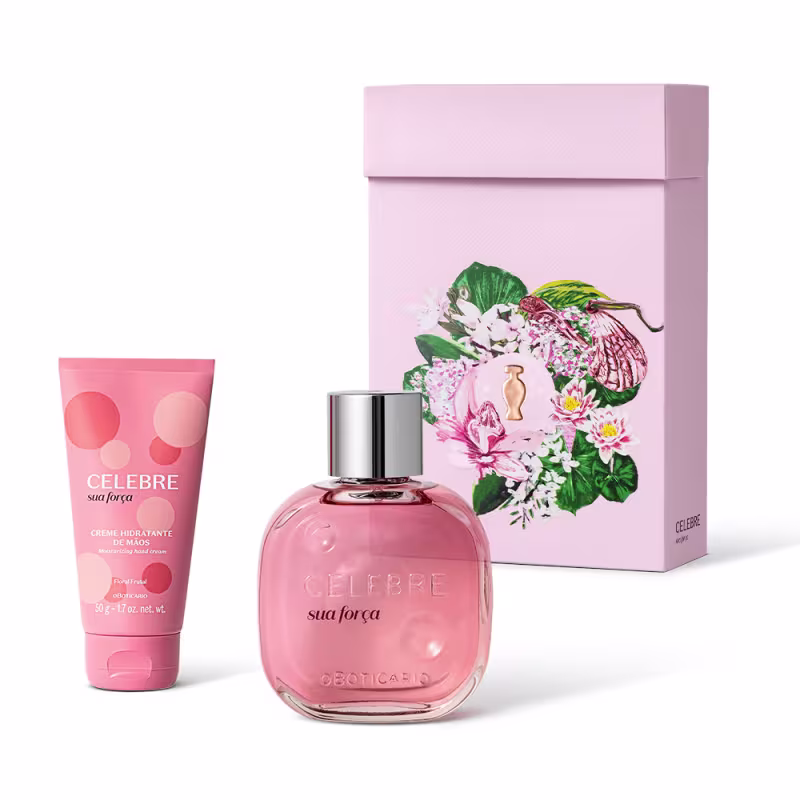 O Kit Presente Dia das Mães Celebre Sua Força une a intensidade do desodorante colônia com o cuidado prático do creme de mãos, proporcionando uma rotina de autocuidado repleta de otimismo e frescor cítrico realçado por madeiras cremosas.Todos os itens vêm em uma caixa florida que evidencia que o grande amor de mãe é algo transcendente e para retribuir, não seria apenas com uma flor, mas com um suntuoso bouquet: