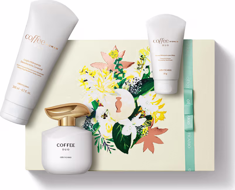 A Loção Hidratante Desodorante Corporal Coffee Woman Duo combina hidratação e desodorização em uma fórmula que desliza suavemente sobre o corpo. Sua textura promove maciez imediata, envolvendo a pele com as notas cremosas e intensas de Coffee Woman Duo. O resultado é uma pele sedosa, protegida e com uma fragrância duradoura que celebra a harmonia única entre o café, o leite e as flores.