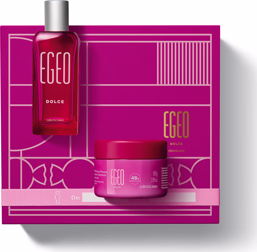 Para começar, o kit traz a irresistível fragrância feminina Egeo Dolce Desodorante Colônia com cheiros do Marshmallow, Sorvete de Framboesa, Algodão-doce e Baunilha. Sua família olfativa é Oriental Gourmand.