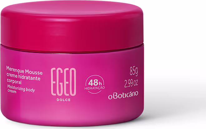O Merengue Mousse Hidratante, vem para finalizar esse presente e deixá-lo ainda mais doce e divertido. O creme tem uma textura leve que que é absorvido rapidamente na pele garantindo até 48h de hidratação, deixando-a com o toque macio e aveludado.