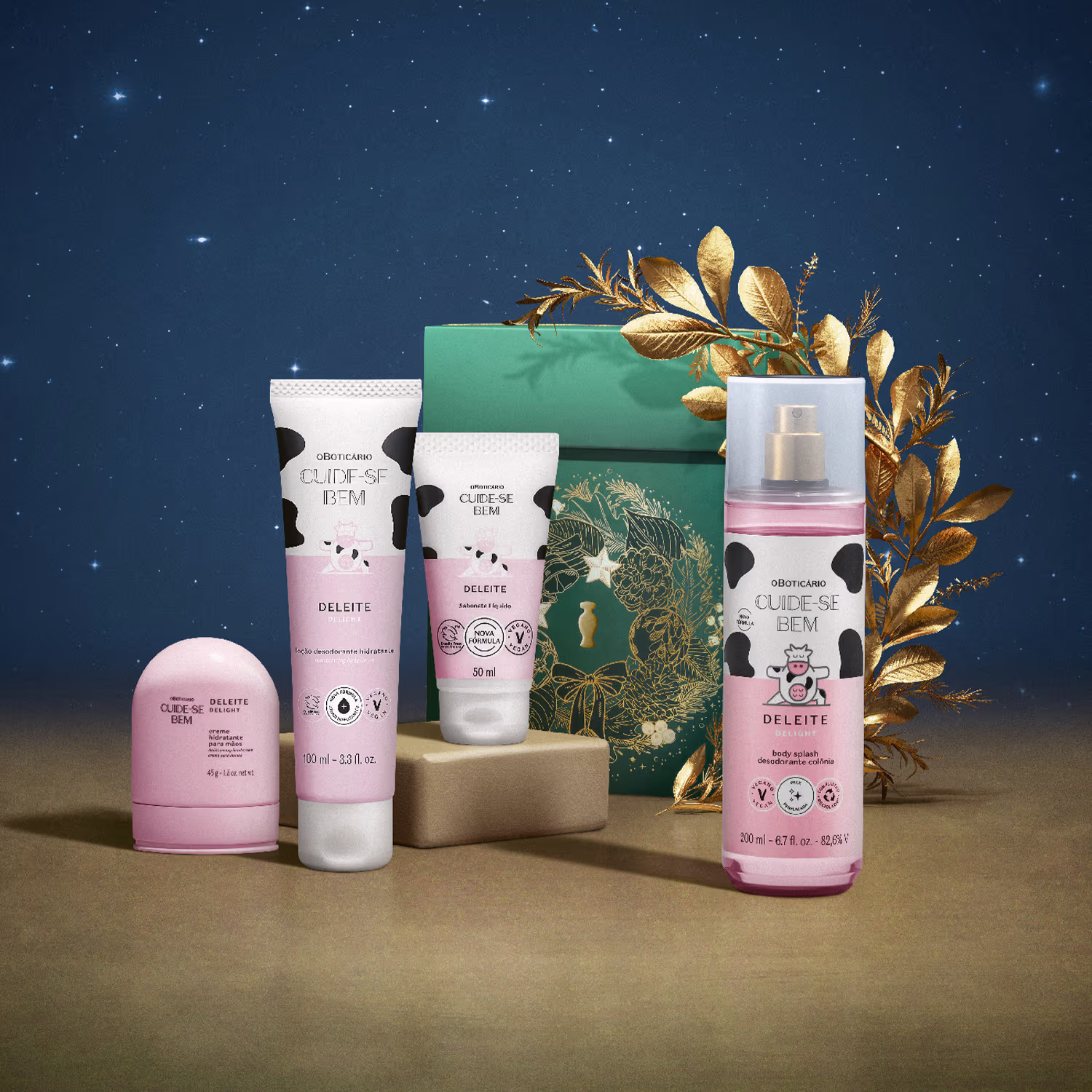 Com quatro itens da fragrância de sucesso Cuide-se Bem Deleite, para encantar com uma lembrança especial. Ver mais ❯
