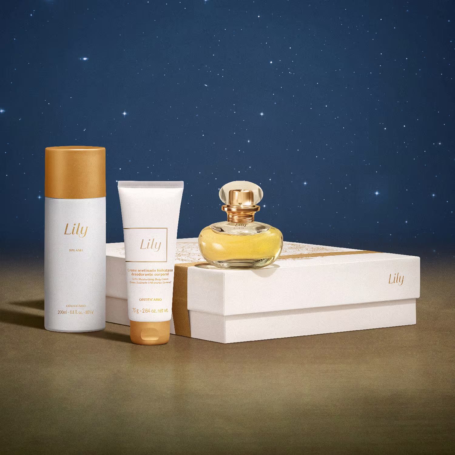Um kit com a clássica sofisticação de Lily em três itens que entregam perfumação e hidratação e cuidado. Ver mais ❯