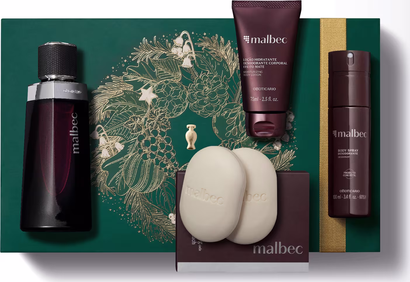 O Kit Presente Natal Malbec é para criar memórias com quem ama a clássica fragrância masculina do Boticário, Malbec. Completo, entrega limpeza, hidratação e perfumação do corpo durante o dia todo. Os 4 itens vêm guardados em uma caixa de presente sofisticada, assim como a linha. Um clássico dos presentes de natal para homem, para criar memórias que duram: