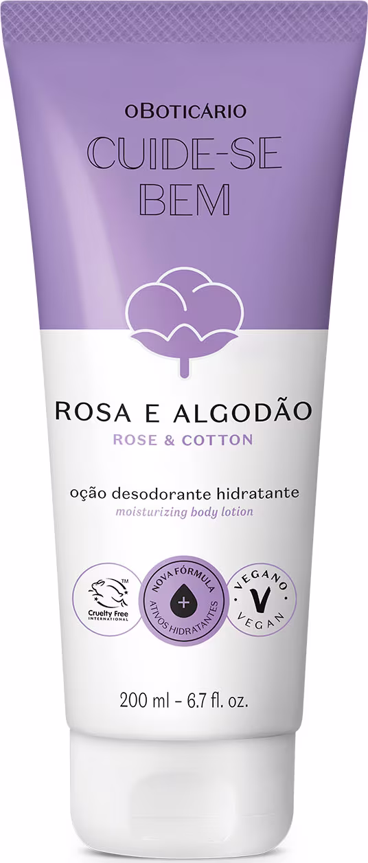 A Loção Desodorante Hidratante Cuide-se Bem Rosa e Algodão é ideal para uma rotina mais leve e cheia de cuidados.