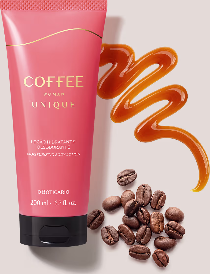 A Loção Hidratante Desodorante Corporal Coffee Woman Unique vai deixar o seu meu momento de autocuidado mais inesquecível. Com a mesma fragrância do desodorante Colônia feminino da linha , este hidratante corporal oferece hidratação por até 48 horas, rápida absorção, e deixa sua pele radiante, iluminada e perfumada.