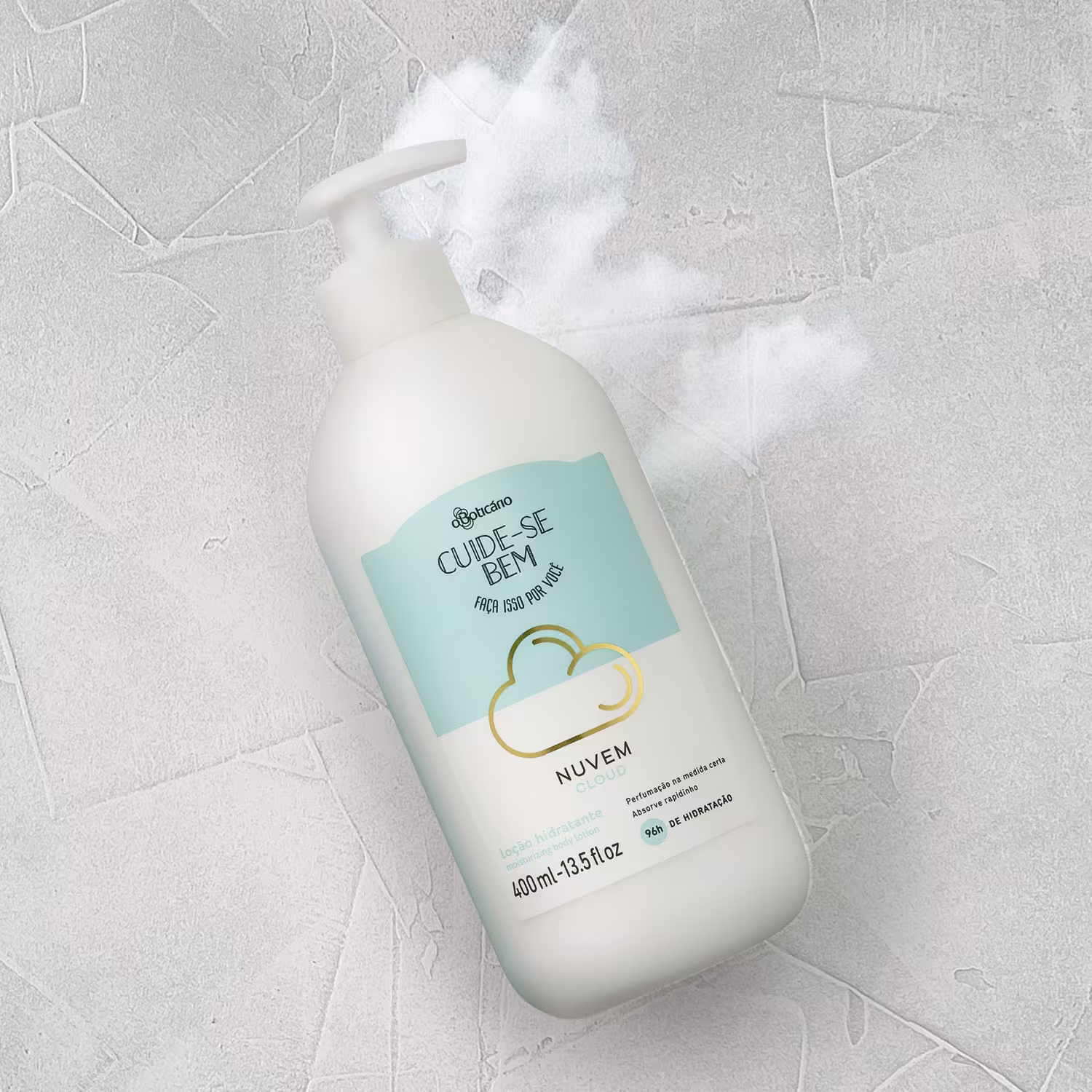Com fórmula altamente hidratante, a loção corporal entrega maciez para sua pele com a fragrância irresistível e confortável como a Nuvem, garantindo um momento de autocuidado incrível em meio a sua rotina.