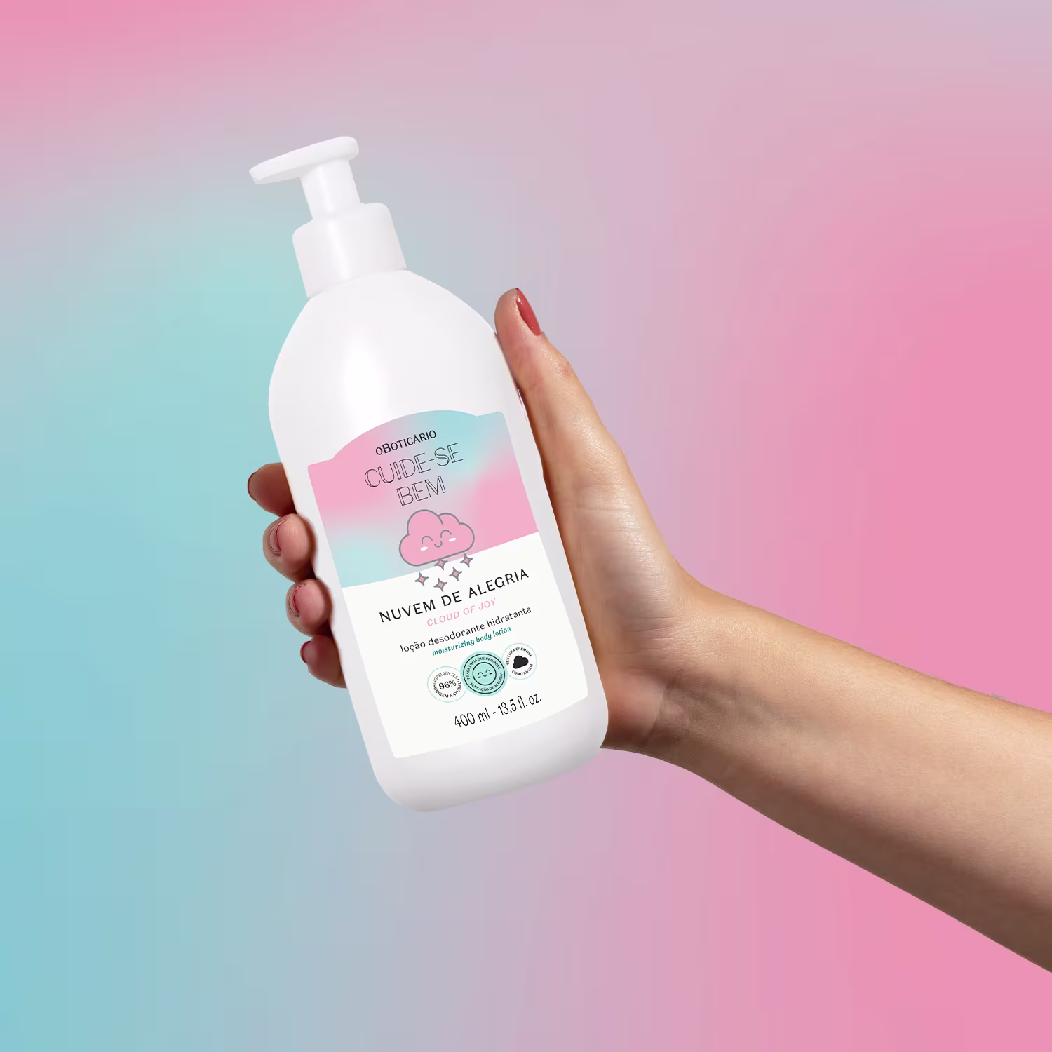 A Loção Hidratante Desodorante Corporal Cuide-se Bem Nuvem de Alegria chegou para dar aquela levantada no seu astral! Com textura cremosa como nuvem, entrega uma fragrância frutal cítrica que promove sensação de felicidade¹, inspirando ao seu redor uma verdadeira nuvem de alegria.