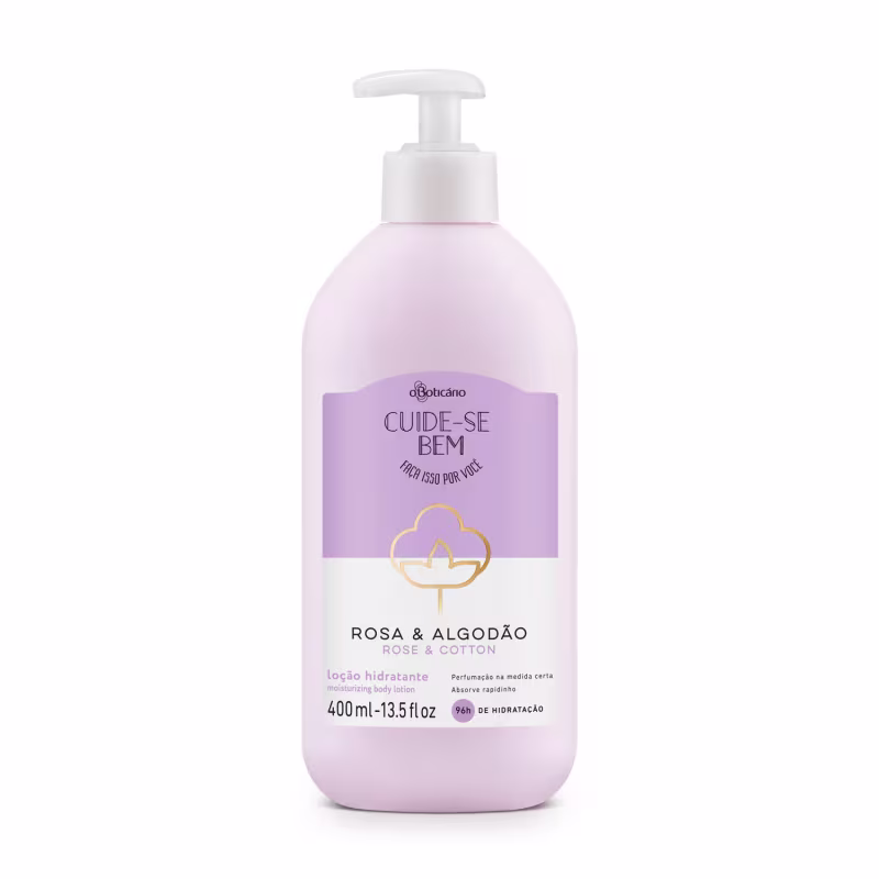 A Loção Hidratante Desodorante Corporal Cuide-se Bem Rosa e Algodão entrega hidratação, fragrância e maciez na medida certa para sua pele.