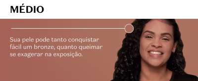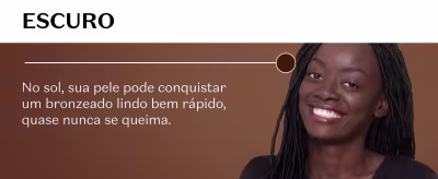 Escolha entre escuro, médio e claro para abrir a lista completa de tons. Algumas características e como a sua pele reage à exposição solar podem ajudar na escolha!