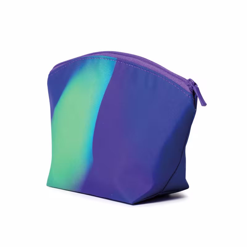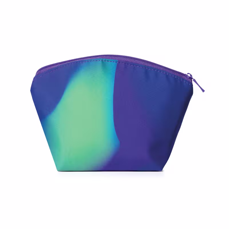 Com zíper para manter os produtos em segurança, suas cores em diferentes tons de azul refletem o calor que sentimos junto à pessoa amada, ou quando recebemos um presente.