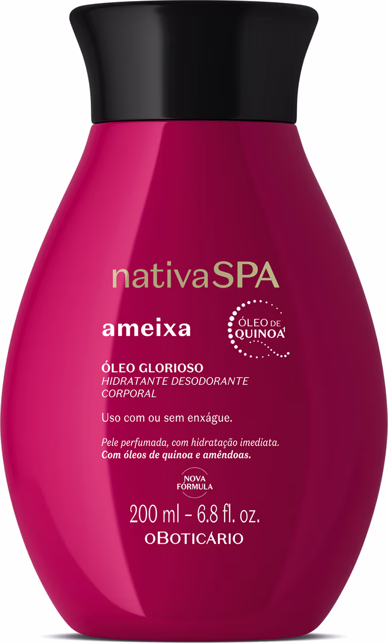 Ideal para usar no banho**,o Óleo Glorioso Hidratante Desodorante Corporal Nativa Spa Ameixa oferece um ritual glorioso. Rico em Óleo De Quinoa e Amêndoas, oferece nutrição profunda e hidratação imediata, ainda mais potente, até nas áreas mais ressecadas da pele.
