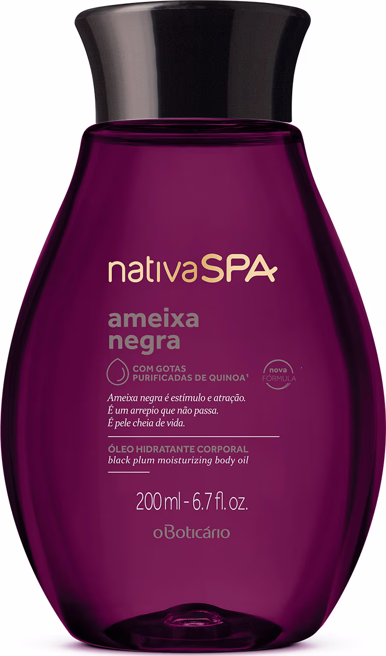 Além da sua fragrância mais sensual e envolvente da família olfativa Floriental Amadeirada, o Óleo Hidratante Corporal Nativa SPA Ameixa Negra proporciona hidratação profunda para uma pele cheia de vida. Com textura fácil de aplicar e espalhar, oferece maciez e toque aveludado sem deixar a pele pegajosa.