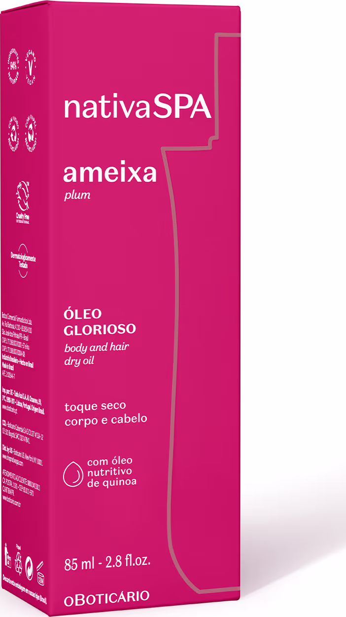 O Óleo Glorioso Nativa SPA Ameixa tem ação multifuncional: pele e cabelo nutridos com explosão de fragrância. Ver mais ❯