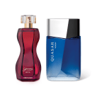 Unimos duas fragrâncias de personalidade para oferecer uma experiência olfativa completa para ele e para ela. Este combo traz a intensidade envolvente de uma fragrância feminina instigante e o frescor moderno de um clássico masculino. É a escolha ideal para o casal que deseja estar à frente do tempo e criar momentos inesquecíveis com muita sofisticação.