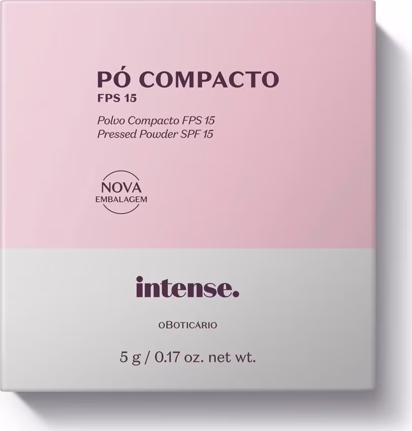 Em diversas cores, o Intense Pó Compacto possui acabamento aveludado, disfarça imperfeições, deixa a pele sem brilho e ainda possui proteção solar FPS 15.