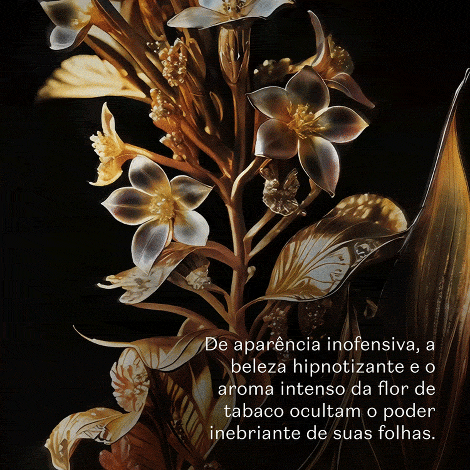 De aparência inofensiva, a beleza hipnotizante e o aroma intenso da Flor De Tabaco ocultam o poder inebriante de suas folhas. Nos inspiramos nesta flor para criar este eau de parfum feminino uma fragrância envolvente da alta perfumaria, com nuances especiadas, combinadas com Madeira e um toque de Âmbar.