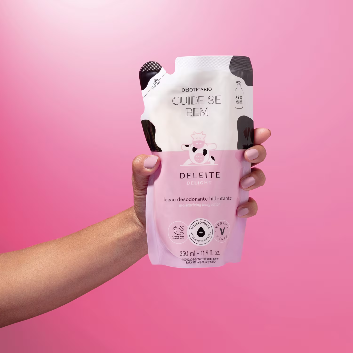 Esta loção corporal tem textura cremosa e toque aveludado com Manteiga de Karité e Glicerol, cuidando da sua pele enquanto a mantém perfumada com a fragrância doce e envolvente de Cuide-se Bem Deleite. Confira mais benefícios: