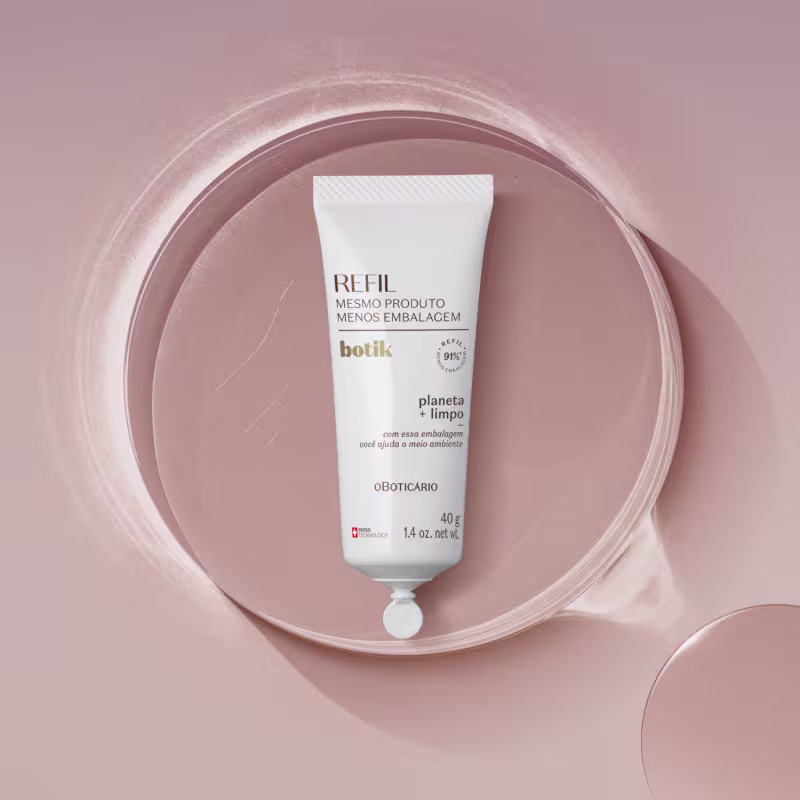 Para melhorar ainda mais nossos atributos de sustentabilidade, a Máscara Reset Noturno Ácido Glicólico Botik, agora tem refil! A bisnaga de uso único carrega a mesma quantidade de produto do pote e sua embalagem é 40% mais leve, perfeito para repor sua máscara noturna e também ajudar o meio ambiente.