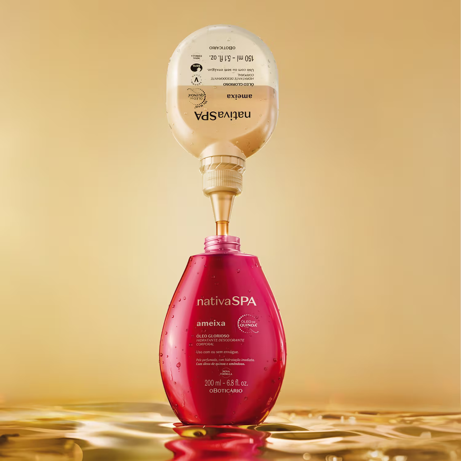 O Refil Óleo Glorioso Hidratante Desodorante Corporal Nativa Spa Ameixa repõe o seu óleo corporal favorito oferecendo um ritual glorioso sem interrupções. Rico em Óleo De Quinoa e Amêndoas, oferece nutrição profunda e hidratação imediata, ainda mais potente, até nas áreas mais ressecadas da pele.