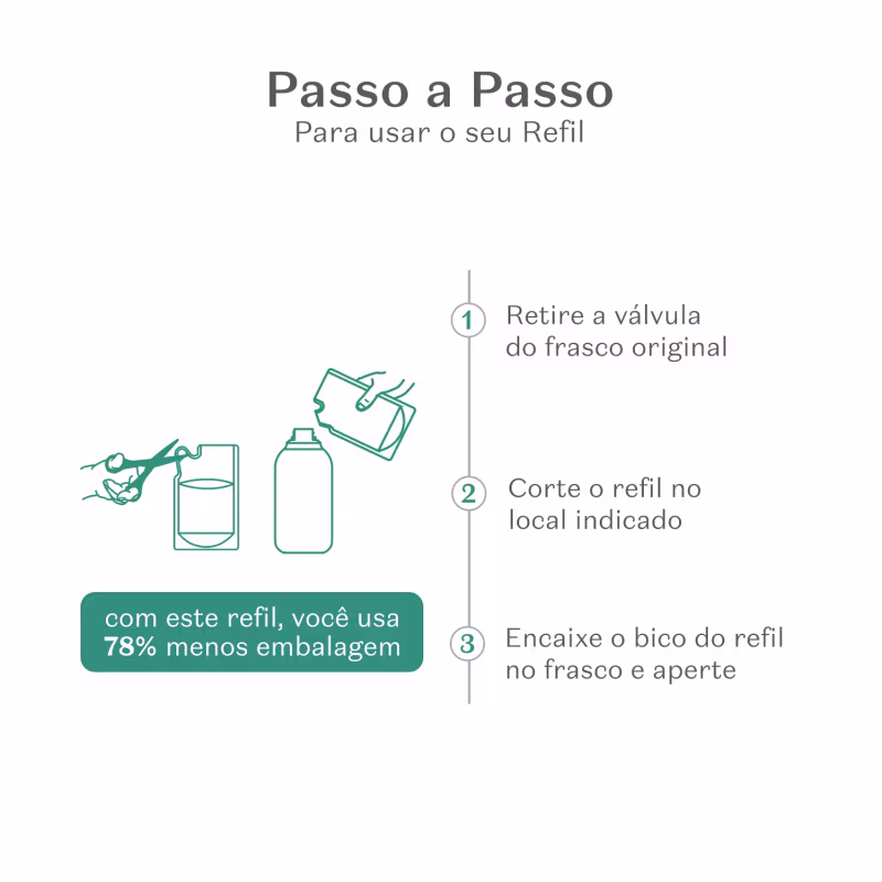 Nenhum produto O Boticário é testado em animais, ou seja, este item possui selo Cruelty Free. 1-Nossa embalagem de refil usa 70% menos plástico que a do produto regular.