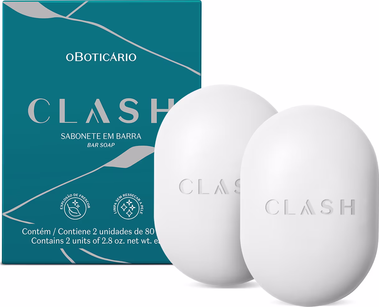 O Sabonete em Barra Clash limpa, perfuma e mantém a hidratação natural da pele,