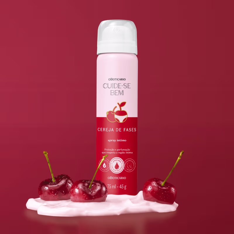 Desenvolvido por neurociência**, o Spray Íntimo Desodorante Cuide-se Bem Cereja De Fases entrega uma fragrância floriental frutal envolvente, oferecendo proteção e perfumação que respeita a região íntima