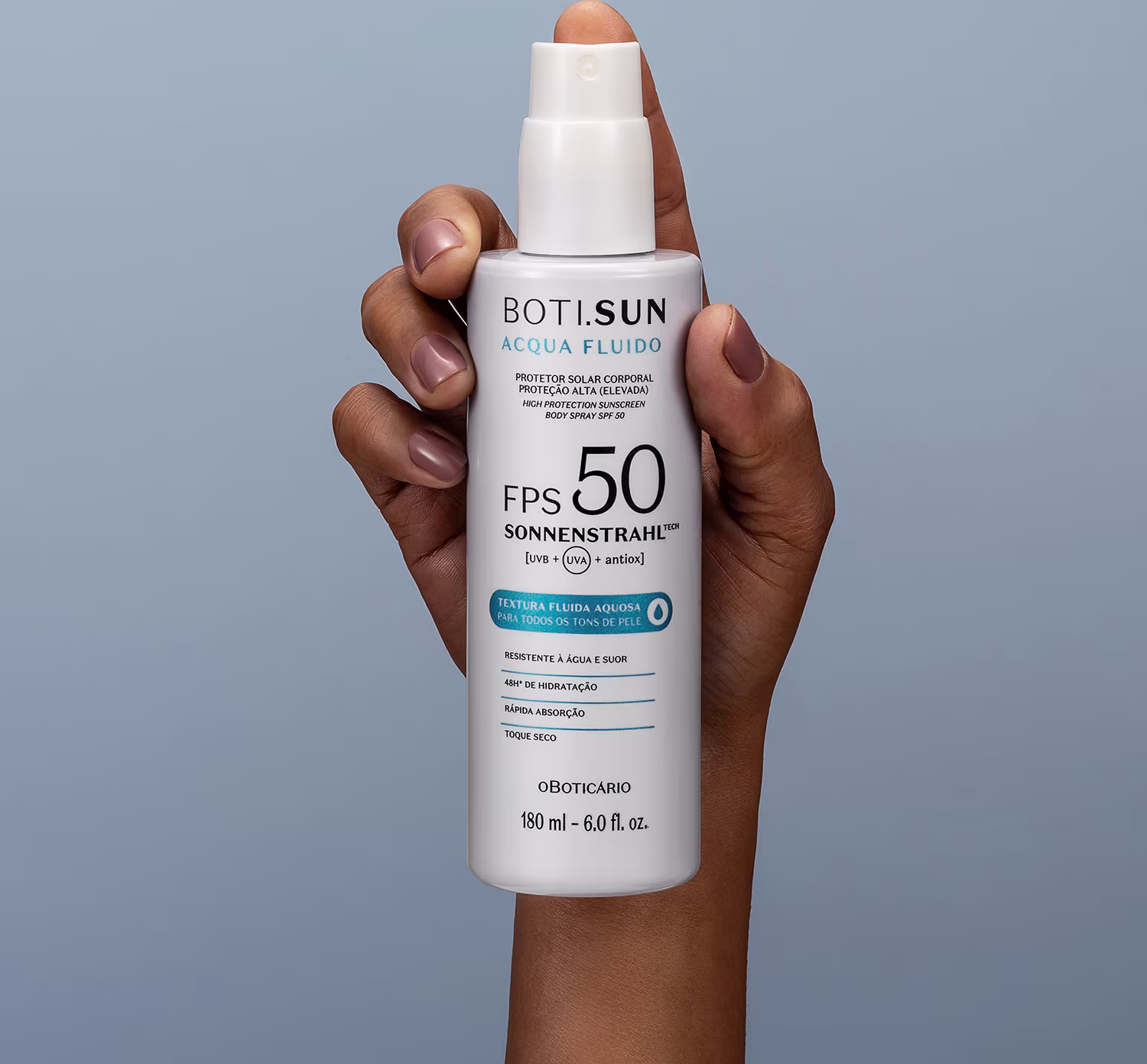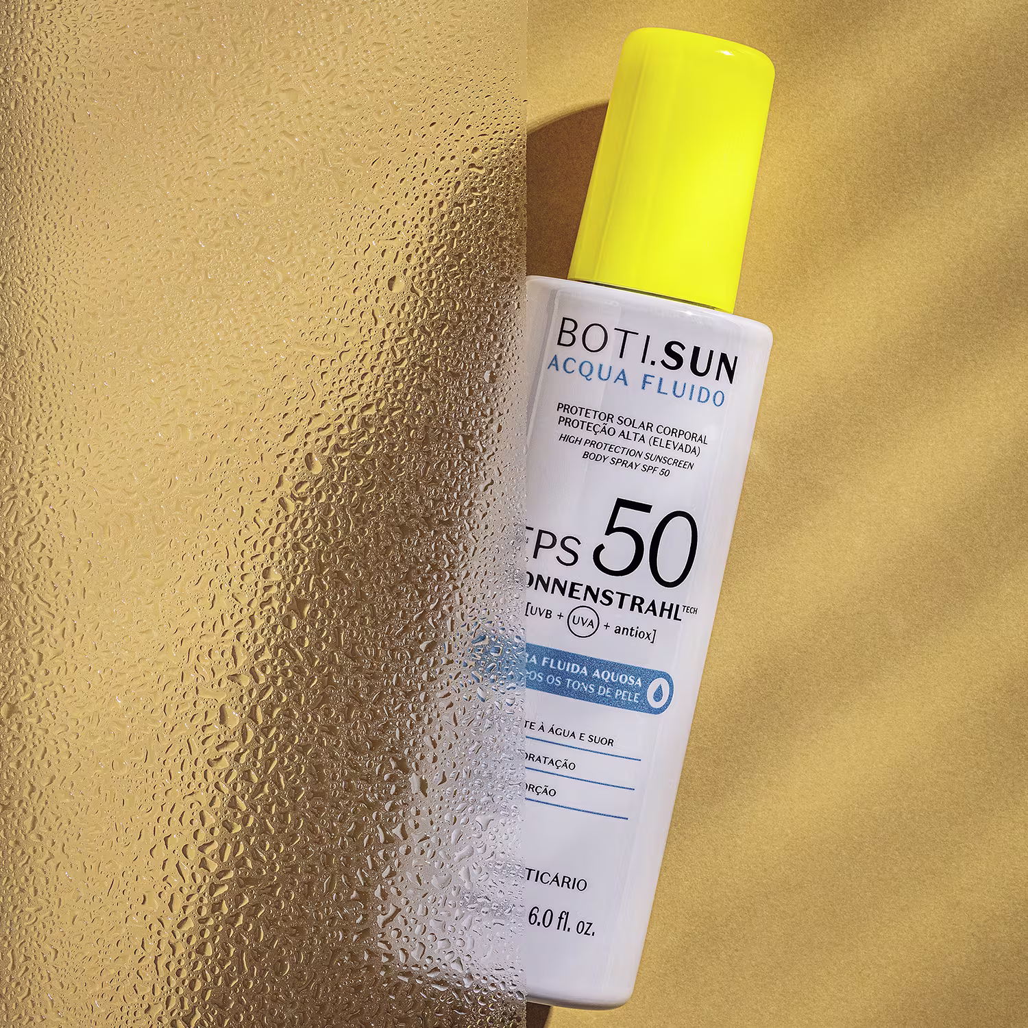 O Spray Protetor Solar Corporal FPS 50 BOTI.SUN Acqua Fluido será seu aliado contra o fotoenvelhecimento e outros problemas relacionados à exposição ao sol.